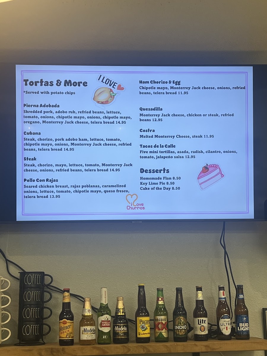 The menu features a variety of tantalizing options. Indulge in our signature tortas like the mouthwatering Cubana or the flavor-packed Steak torta, each priced around $14.95. For a lighter bite, try our savory quesadillas or tacos de alambre. Breakfast lovers will adore our hearty Antojitos, such as the Good Morning Molletes. And don't forget to wash it down with one of our refreshing cold drinks, like the Iced Horchata Latte.
